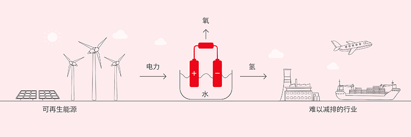 Power to H2:利用可再生能源產生的電力,通過電解槽將水分解成氫氣和氧氣。
