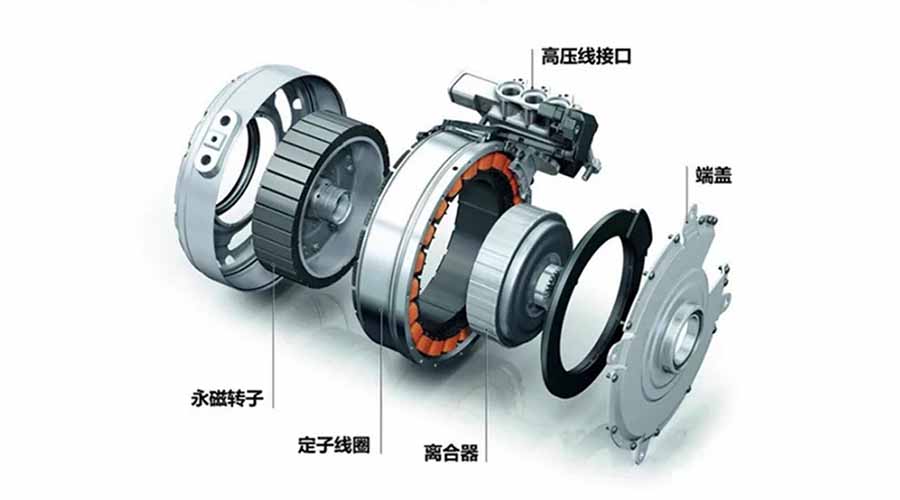 但是隨著現(xiàn)代新型高磁性稀土永磁材料的快速發(fā)展,永磁同步電機(jī)在近幾年開始逐漸登上舞臺(tái)。和異步電機(jī)相比,永磁同步電機(jī)采用永磁體勵(lì)磁,不存在勵(lì)磁電流和轉(zhuǎn)子損耗,因此能效較高,并且由于損耗發(fā)熱低,同樣機(jī)座號(hào)的電機(jī)可以承載更大的電流負(fù)荷,這意味著相同功率的永磁同步電機(jī)體積和重量都比異步電機(jī)要低,材料消耗更少。