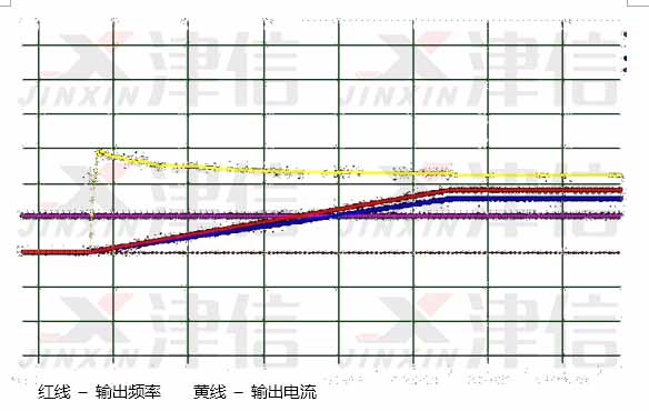 變頻器和電機(jī)參數(shù)設(shè)置完成后,開機(jī)啟動(dòng),下圖是加速時(shí)的轉(zhuǎn)速電流波型曲線,可以看出,電機(jī)加速及運(yùn)行平穩(wěn),電流輸出正常。