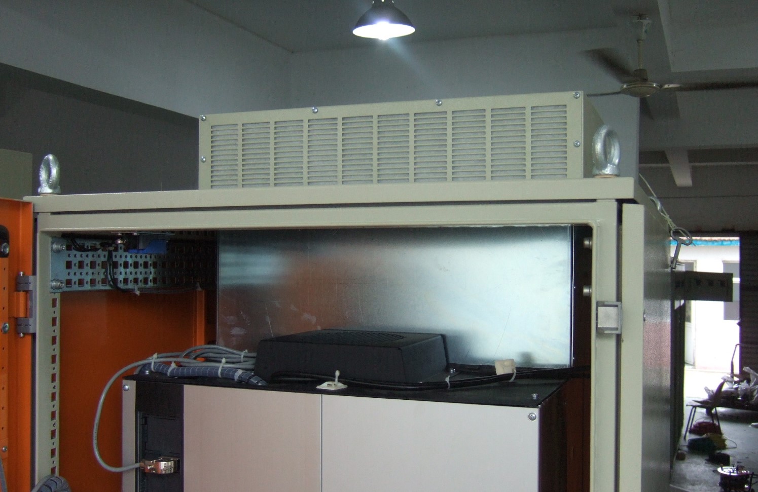 6、如果不用獨立風(fēng)道,請按照公式Q(m³/h)=3.1*P(w)/K(℃)計算,其中Q 是所需要的散熱風(fēng)量、P 是柜內(nèi)總發(fā)熱量、K 是溫升(取值為45℃-最高環(huán)境溫度),計算出Q 后,建議按照兩倍的經(jīng)驗值來選擇,因為柜內(nèi)散熱不是百分百的有效散熱,特別是風(fēng)扇有濾網(wǎng)時更要再放大。
