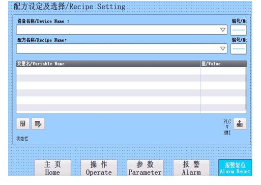 在實際使用中,因客戶產品的多樣性,需要不同的工藝參數,通過西門子觸摸屏的配方功能,可以保存客戶不同產品的工藝參數,并可以快速切換不同配方,提高了設備的通用性。