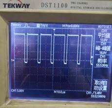 6,查看電源卡開關(guān)電源部分的圖紙,檢查IC2844的前級(jí)啟動(dòng)電阻和整流橋均正常,最后檢查脈沖變壓器供給IC2844的次級(jí)供電回路,發(fā)現(xiàn)啟動(dòng)電容降容超出15%,判定為損壞,將此電容更換后,再次上電機(jī)器顯示正常,測(cè)量開關(guān)管驅(qū)動(dòng)波形正常,原故障修復(fù)。以下是2844輸出的正常波形。