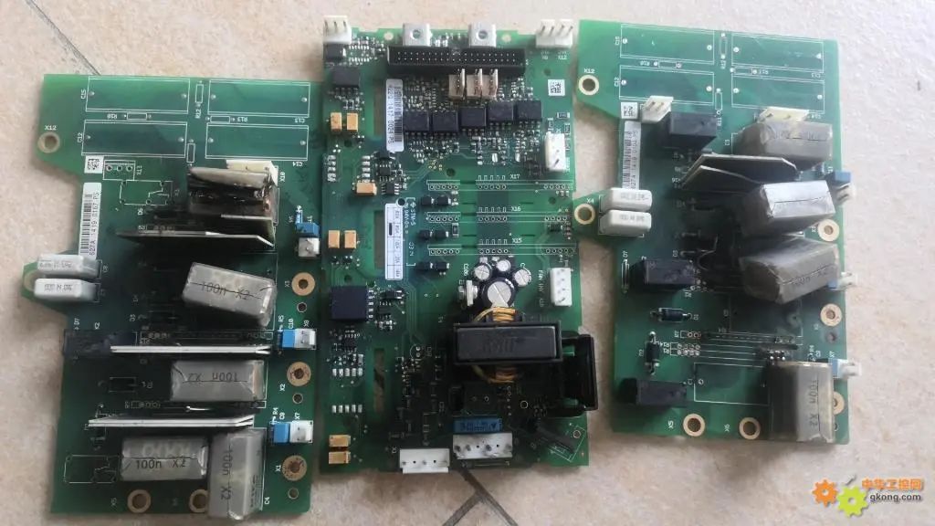 Vacon變頻器的整流一般都是采用可控硅半橋方式,觸發取樣直接采樣進線電壓同步頭,接觸器常閉時就是給電容充電,斷開時就變成可控硅供電!原理簡單粗暴,所以你能在可控硅切入工作時,聽到“嗡”的一聲。那是相電壓給母線供額定電壓,由于這時的電容電壓還不到額定值,這第一下的導通電流是很大的。停機很久的變頻器,如果沒經過預熱,往往都熬不過這一下子。原因是,蓄能電容從欠壓,到額定電壓(ac690v供電,母線電壓大約在950v以上),這個浪涌往往會擊穿觸發板上的諧波吸收電容,進而引發母線打火,燒壞板卡。