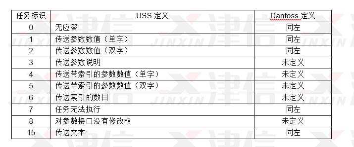 S7-200 USS4通訊子程序中用到的任務(wù)標(biāo)識與Danfoss的定義相同。